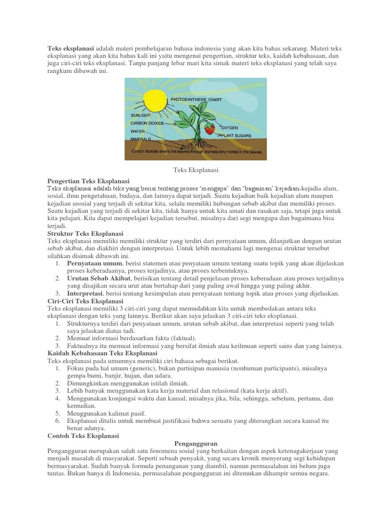 Sesuatu ini bisa berupa peristiwa alam, ilmu pengetahuan, sosial, ekonomi, budaya, berita dan lainnya. Contoh teks berita tentang ekonomi. Teks eksplanasi merupakan jenis teks tentang proses bagaimana dan mengapa suatu peristiwa atau kejadian. Untuk lebih memahaminya, disini kita akan memberikan beberapa contoh agar anda tidak keliru serta dapat membedakannya terhadap jenis teks yang lainnya. Ada banyak sekali penganguran yang tercatat.