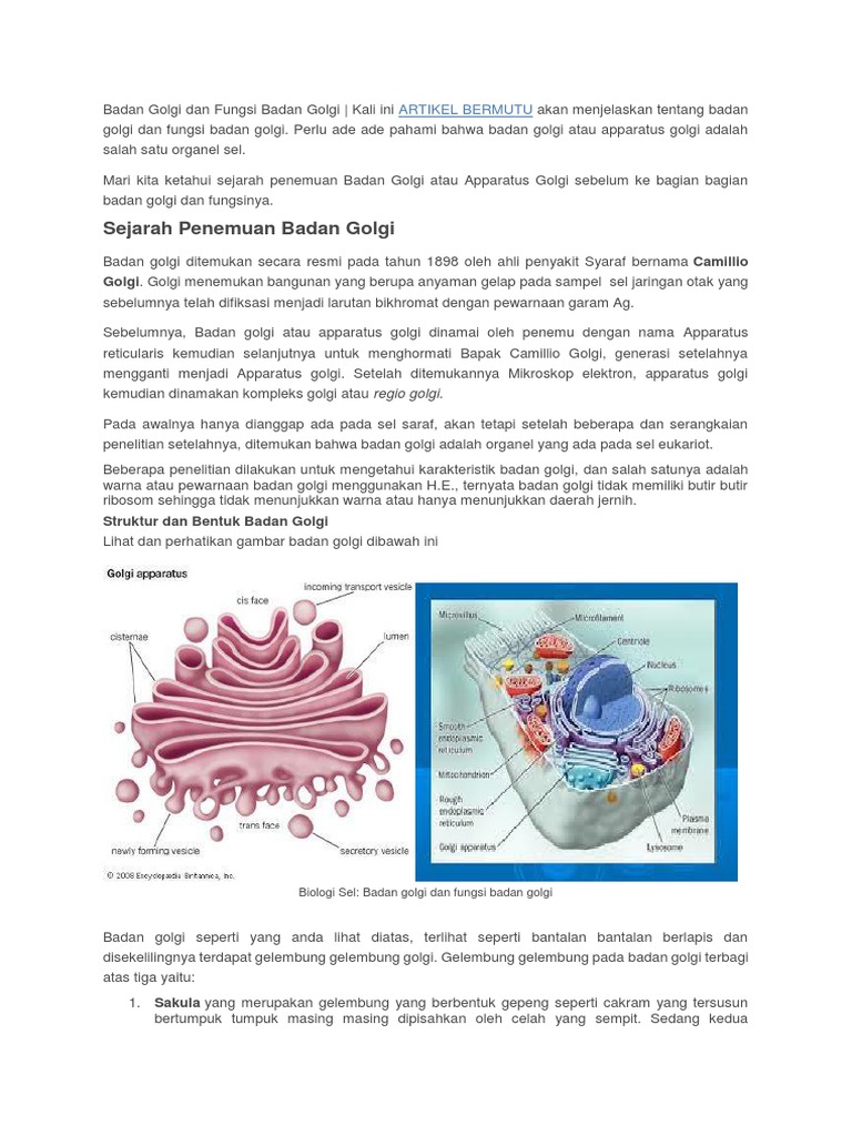 Badan golgi akan membentuk kantong demikianlah uraian lengkap tentang sel tumbuhan dan fungsinya lengkap dengan gambar dan. Badan golgi dapat ditemukan di semua sel eukariotik. Organel tersebut lantas diberi nama badan golgi. Badan golgi merupakan kantong pipih bertumpuk yang tersusun dari ukuran besar hingga ukuran kecil dan terikat membran. Fungsi badan golgi adalah untuk mengumpulkan protein yang dihasilkan dari re (retikulum untuk lebih lengkapnya lagi simaklah materi makalah tentang badan golgi, pengertian, struktur, jenis, dan.